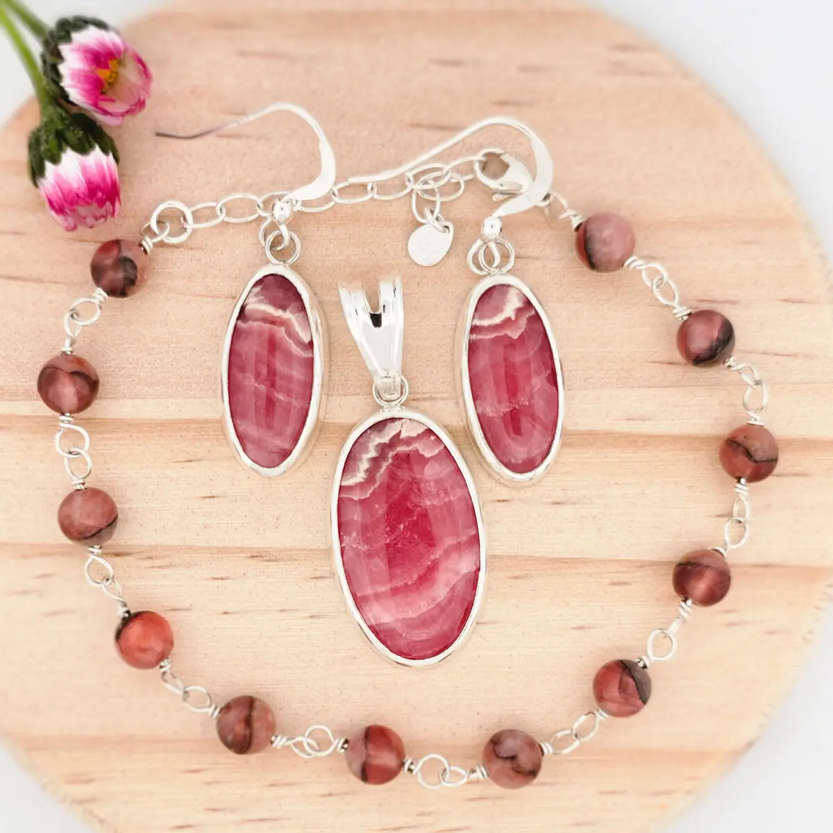 Célébrez l’harmonie de la nature avec ces boucles d’oreilles en Rhodochrosite, une œuvre d’art unique façonnée pour immortaliser la beauté des roses.
