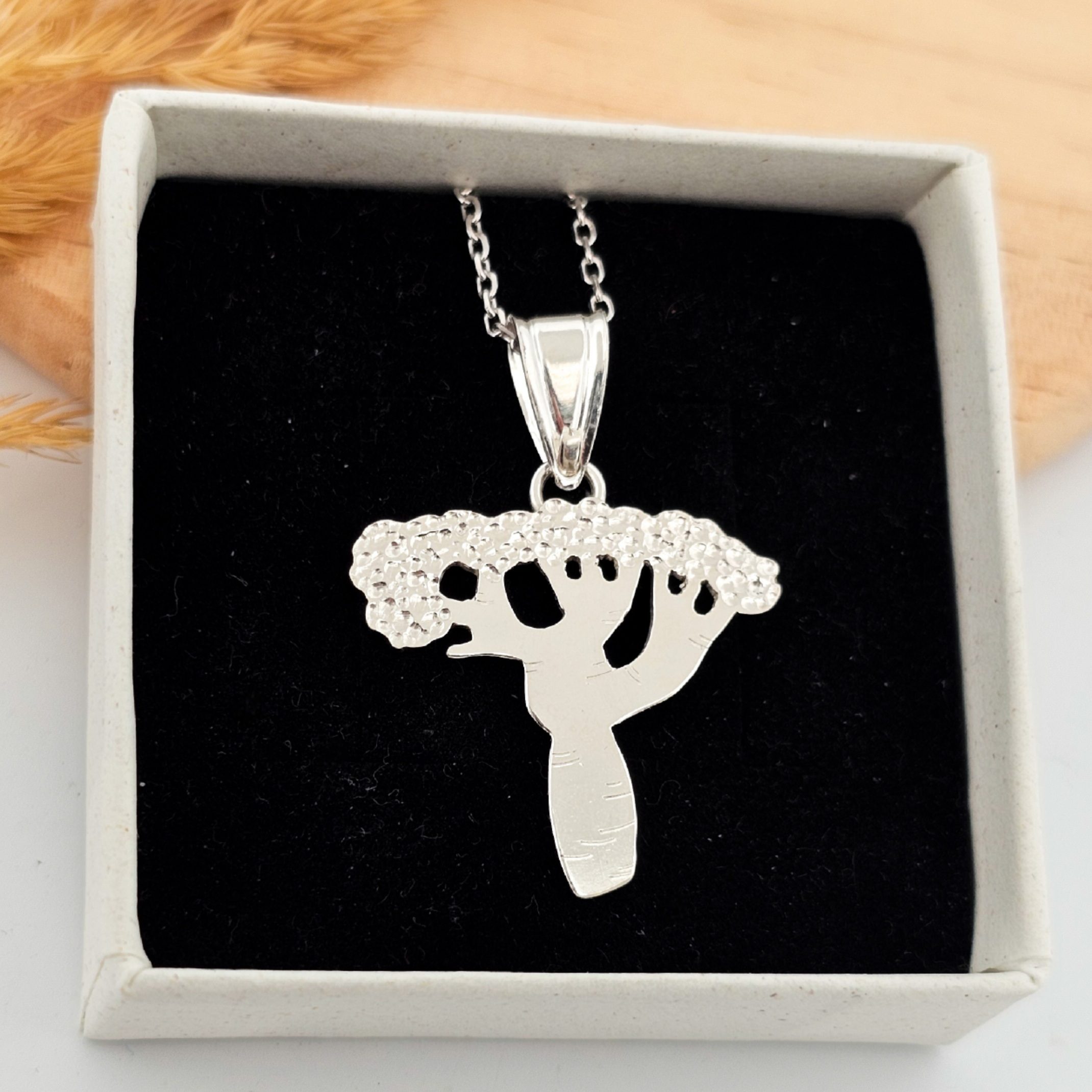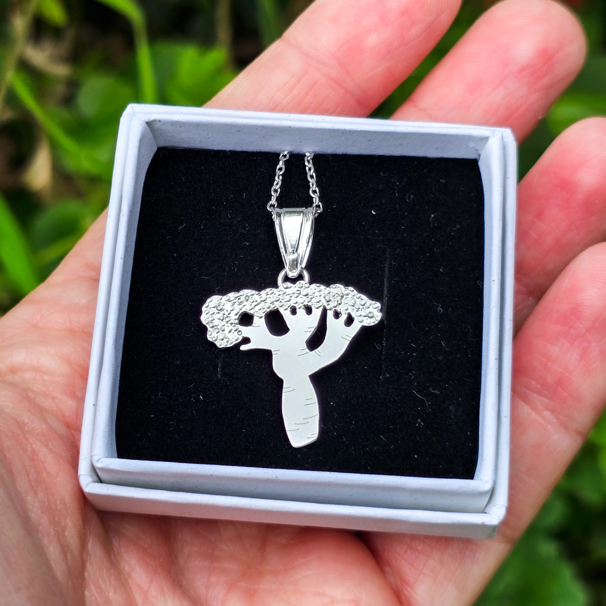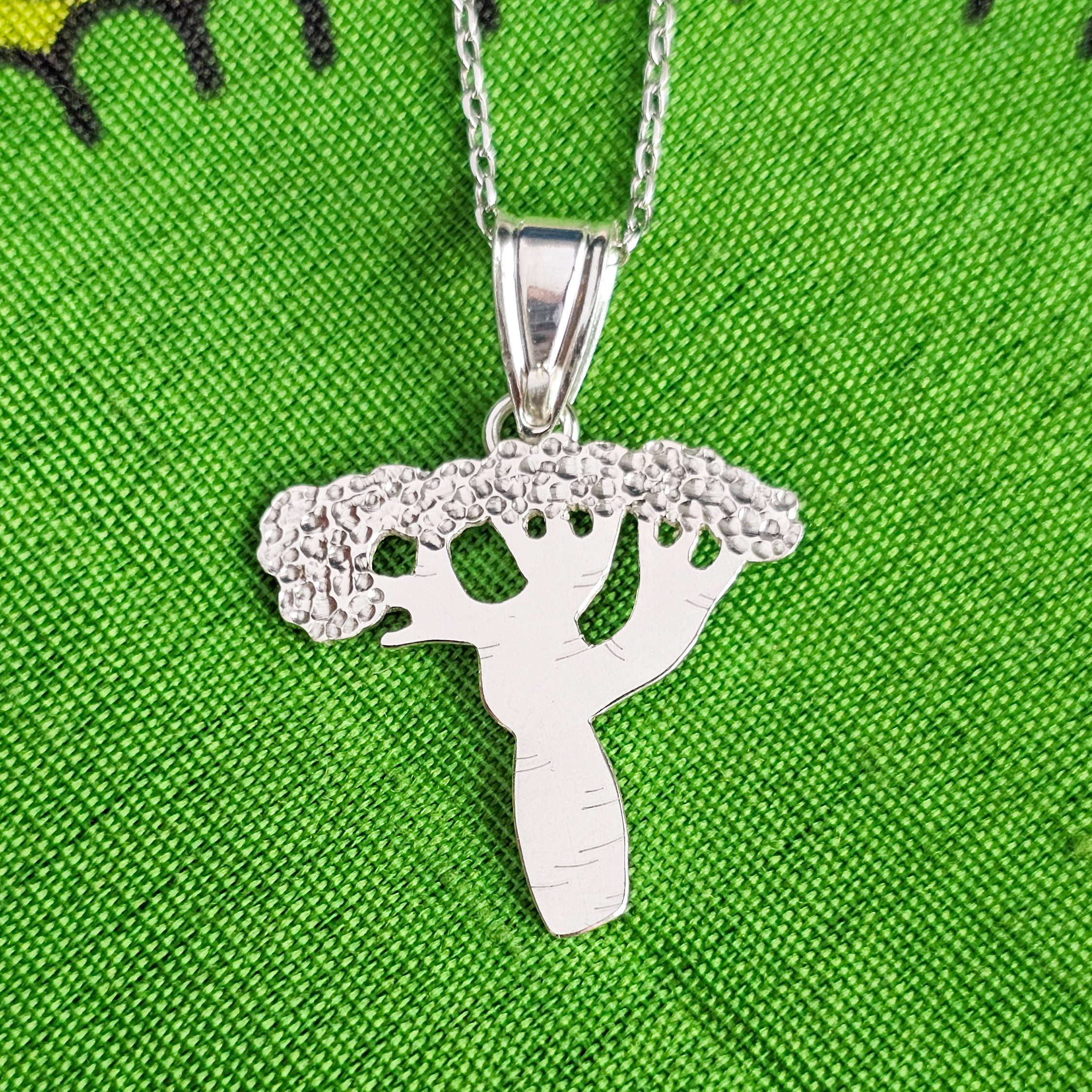 Ce pendentif Mbuyu, en argent 925, fait partie de la collection « Tanzanie ». Mbuyu signifie baobab en Swahili, la langue nationale de la Tanzanie.