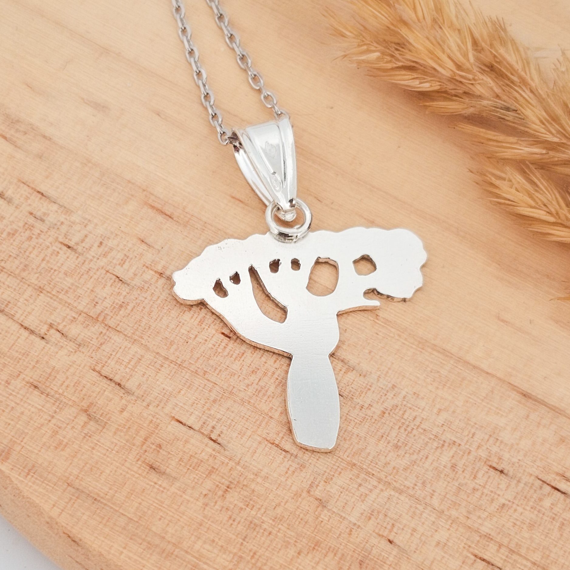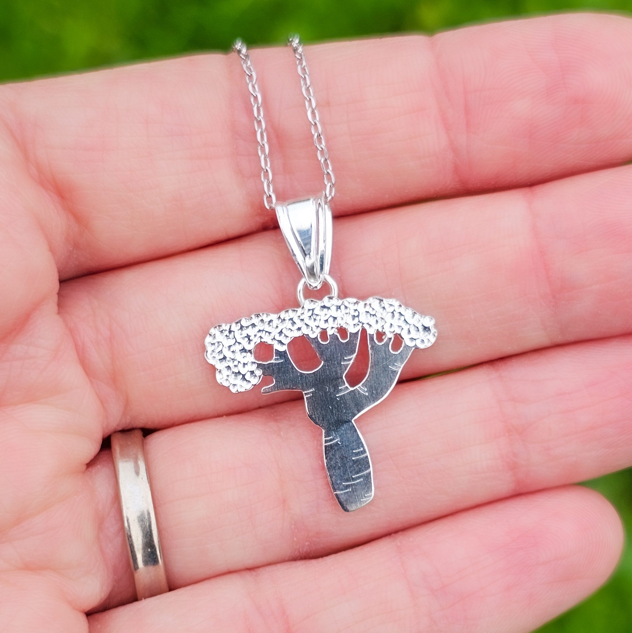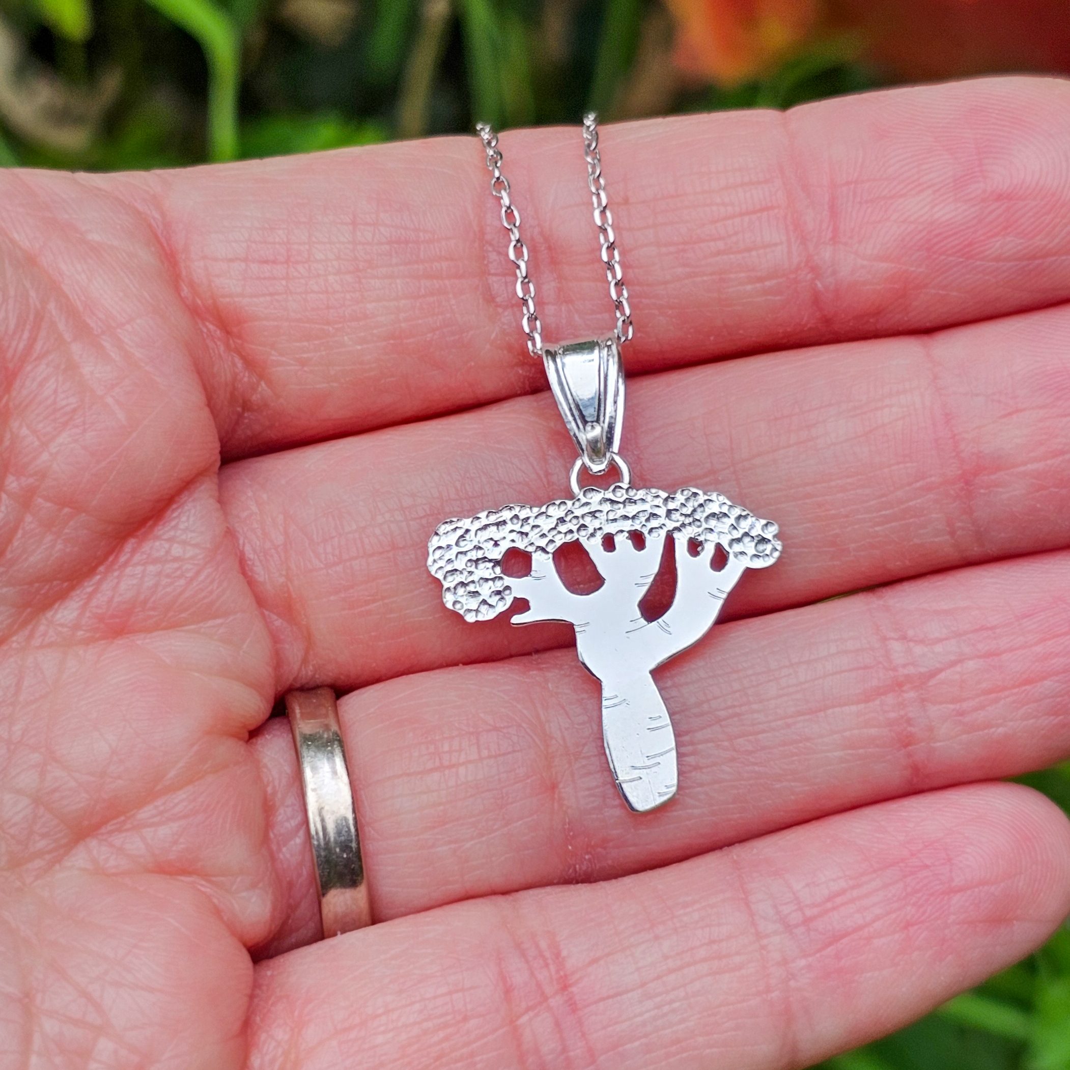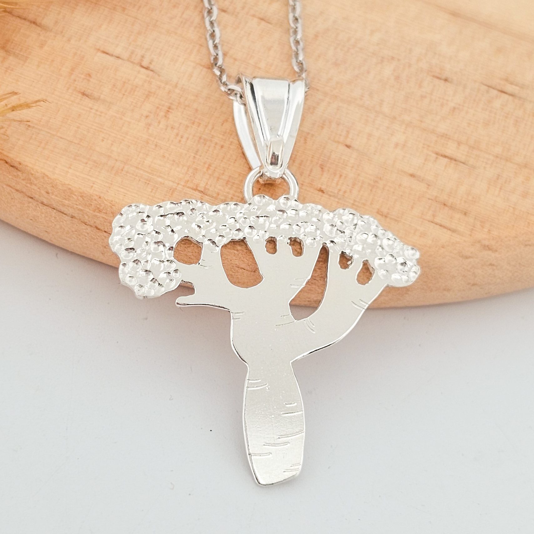 Ce pendentif Mbuyu, en argent 925, fait partie de la collection « Tanzanie ». Mbuyu signifie baobab en Swahili, la langue nationale de la Tanzanie.