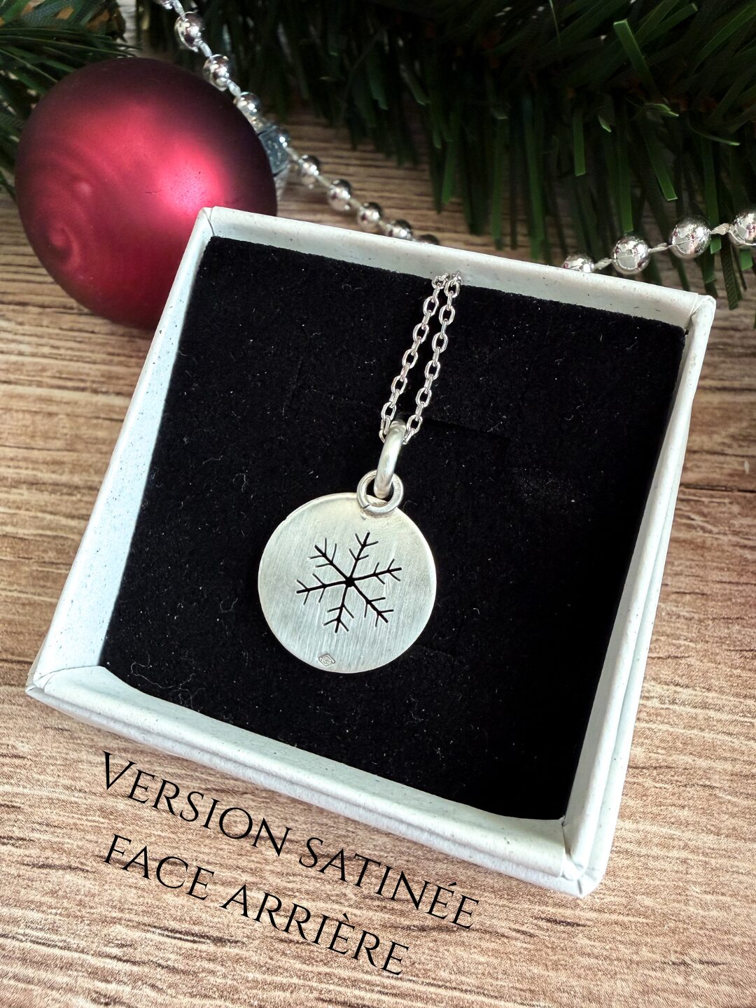 Si vous aussi vous adorez observer les flocons tomber lentement, puis parer le sol de leur brillance magique, ce pendentif vous permettra d’ancrer cet instant et de le porter toujours auprès de vous.