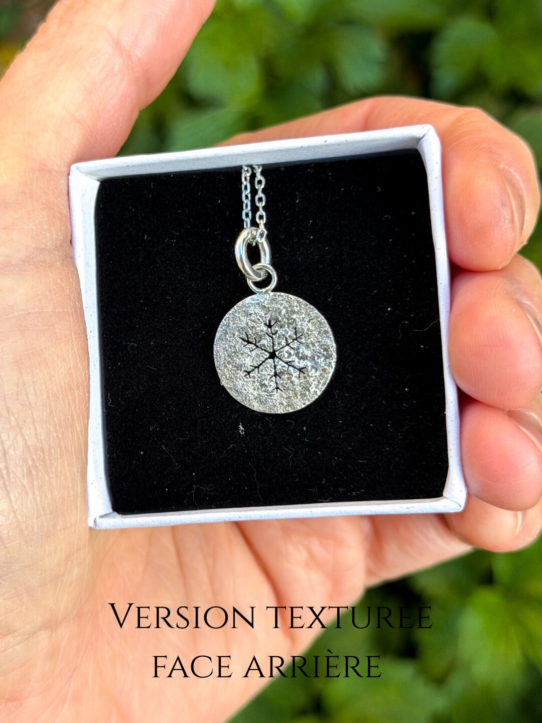 Ce pendentif Empreinte de flocon, en argent 925, a été créé pour immortaliser la beauté éphémère d’un flocon de neige.